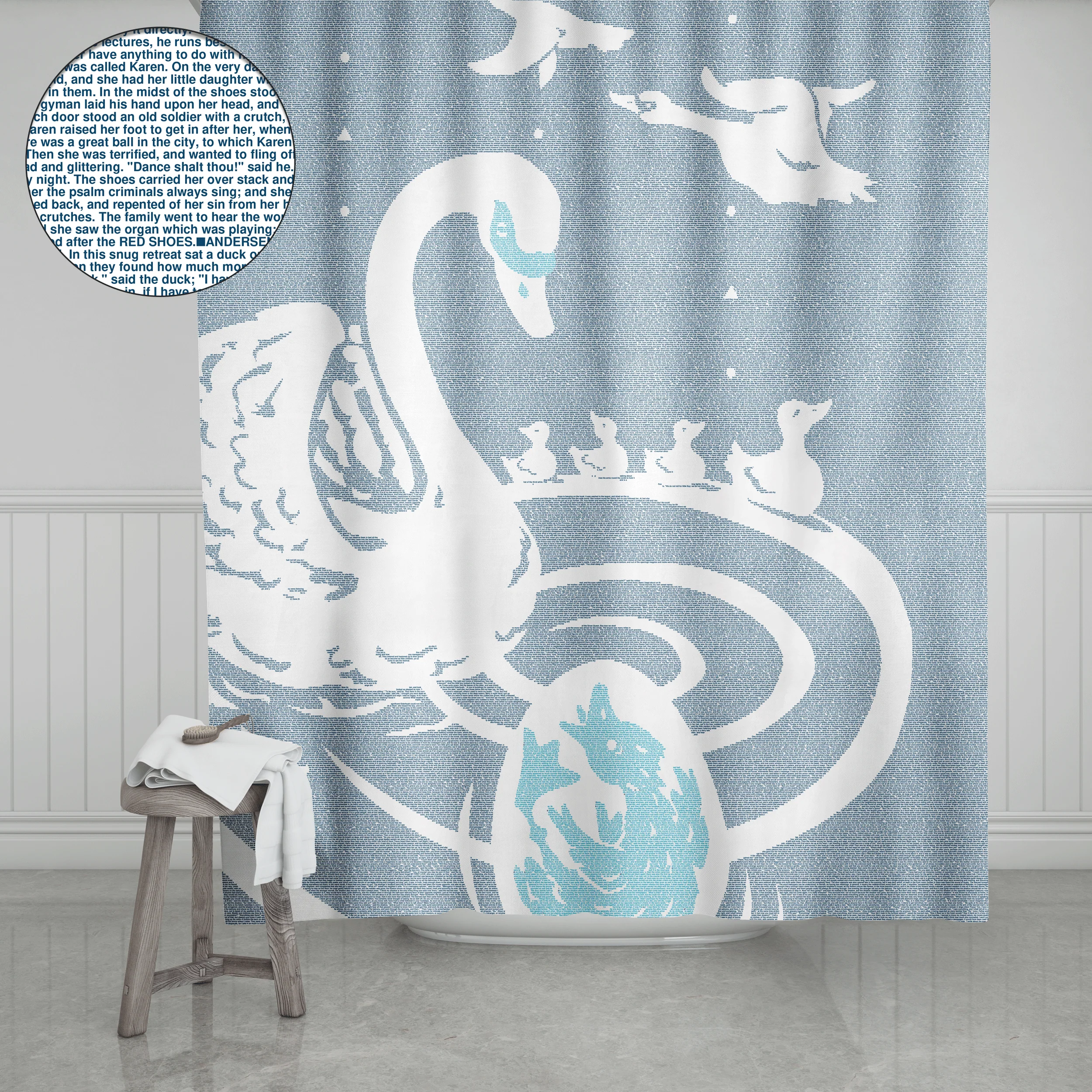 This shower curtain is created from the text of Andersen's Fairy Tales by Hans Christian Andersen.