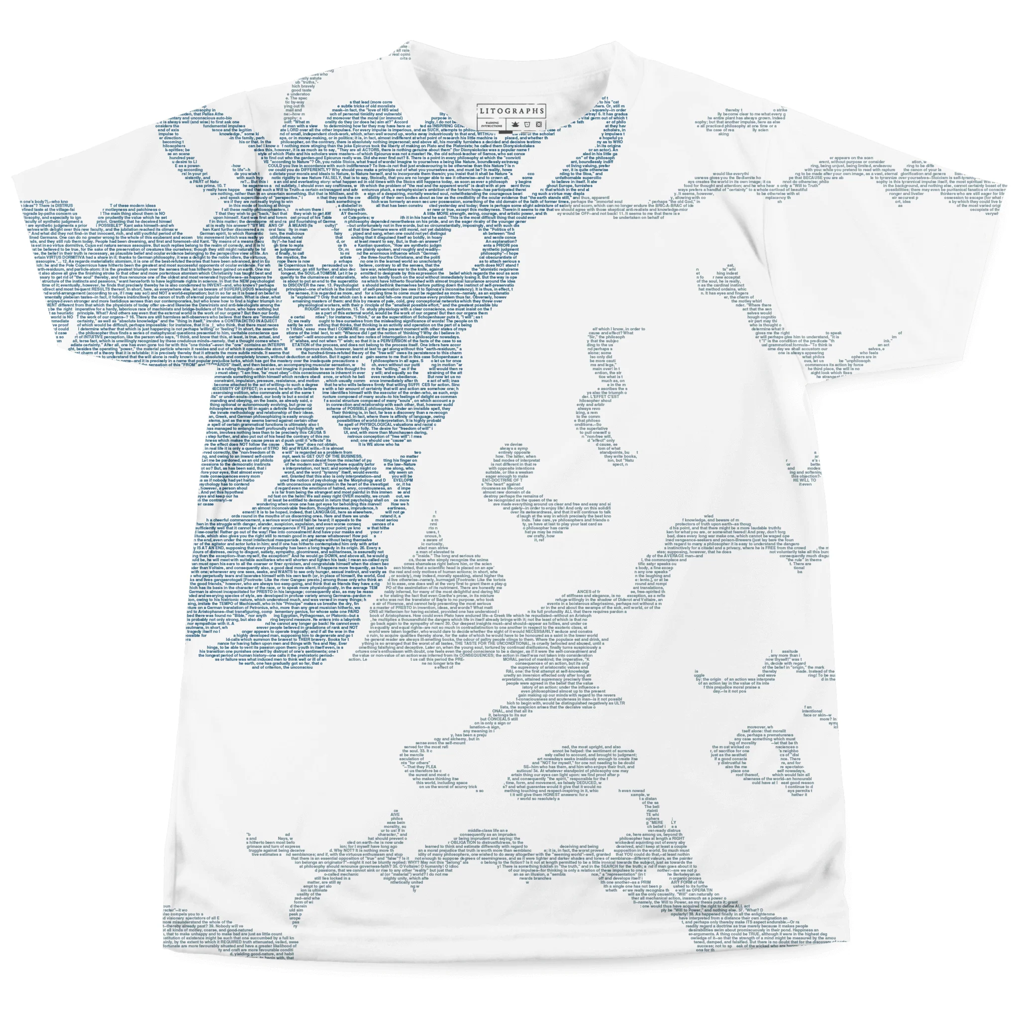 This t-shirt is created from the text of Beyond Good and Evil by Friedrich Nietzsche.