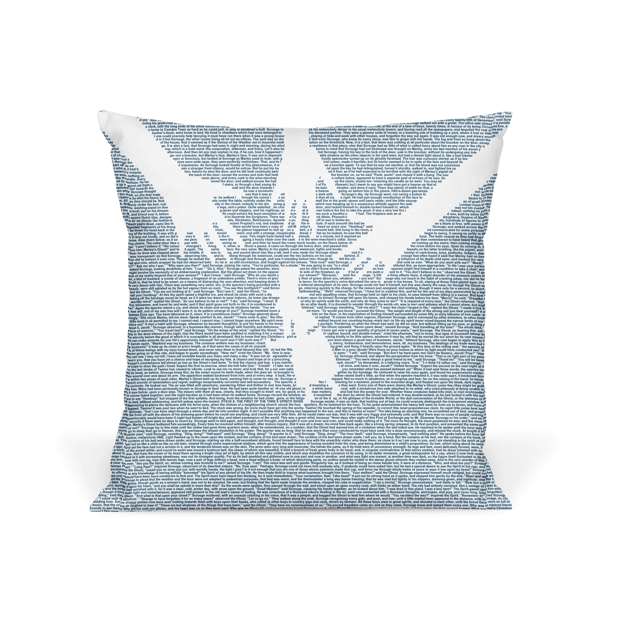 This pillow is created from the text of A Christmas Carol by Charles Dickens.