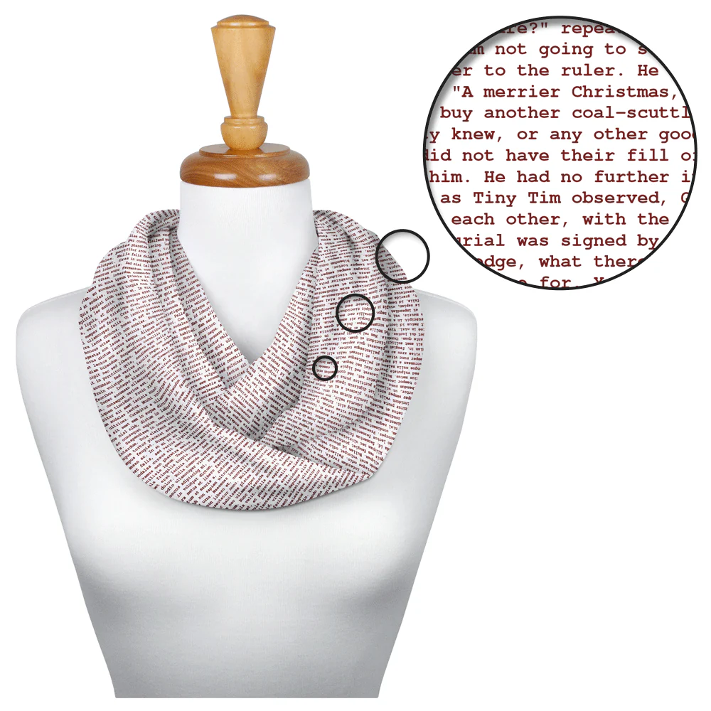 This scarf is created from the text of A Christmas Carol by Charles Dickens.