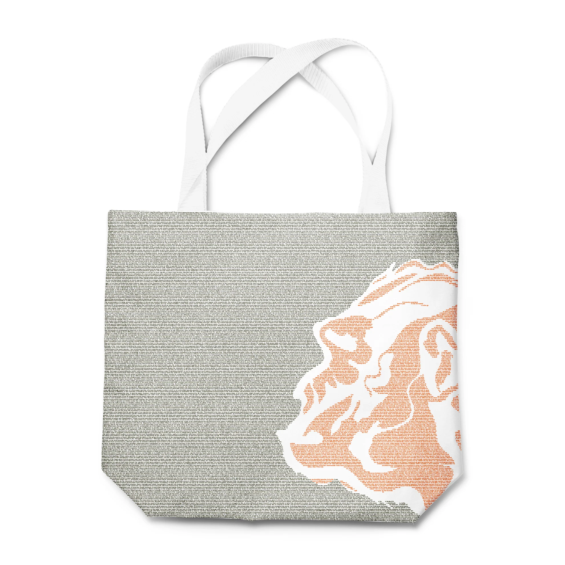 This tote bag is created from the text of On the Origin of Species by Charles Darwin.