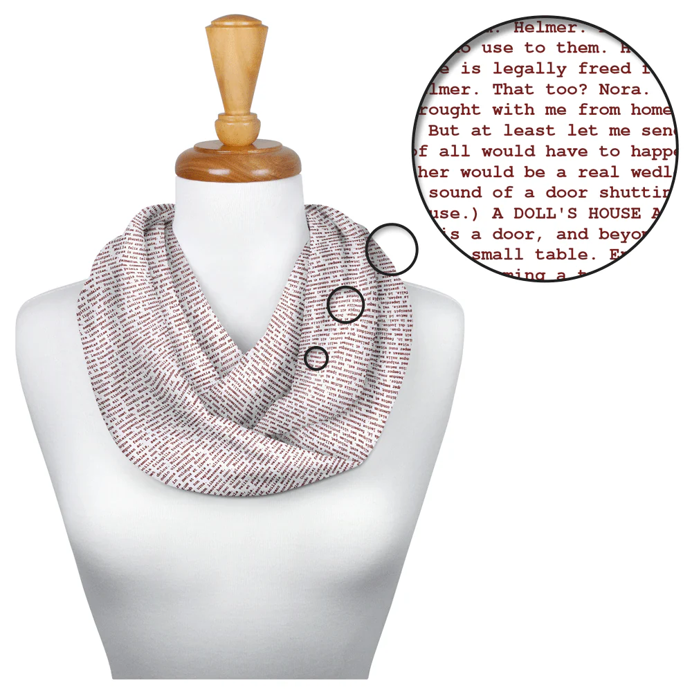 This scarf is created from the text of A Doll's House by Henrik Ibsen.