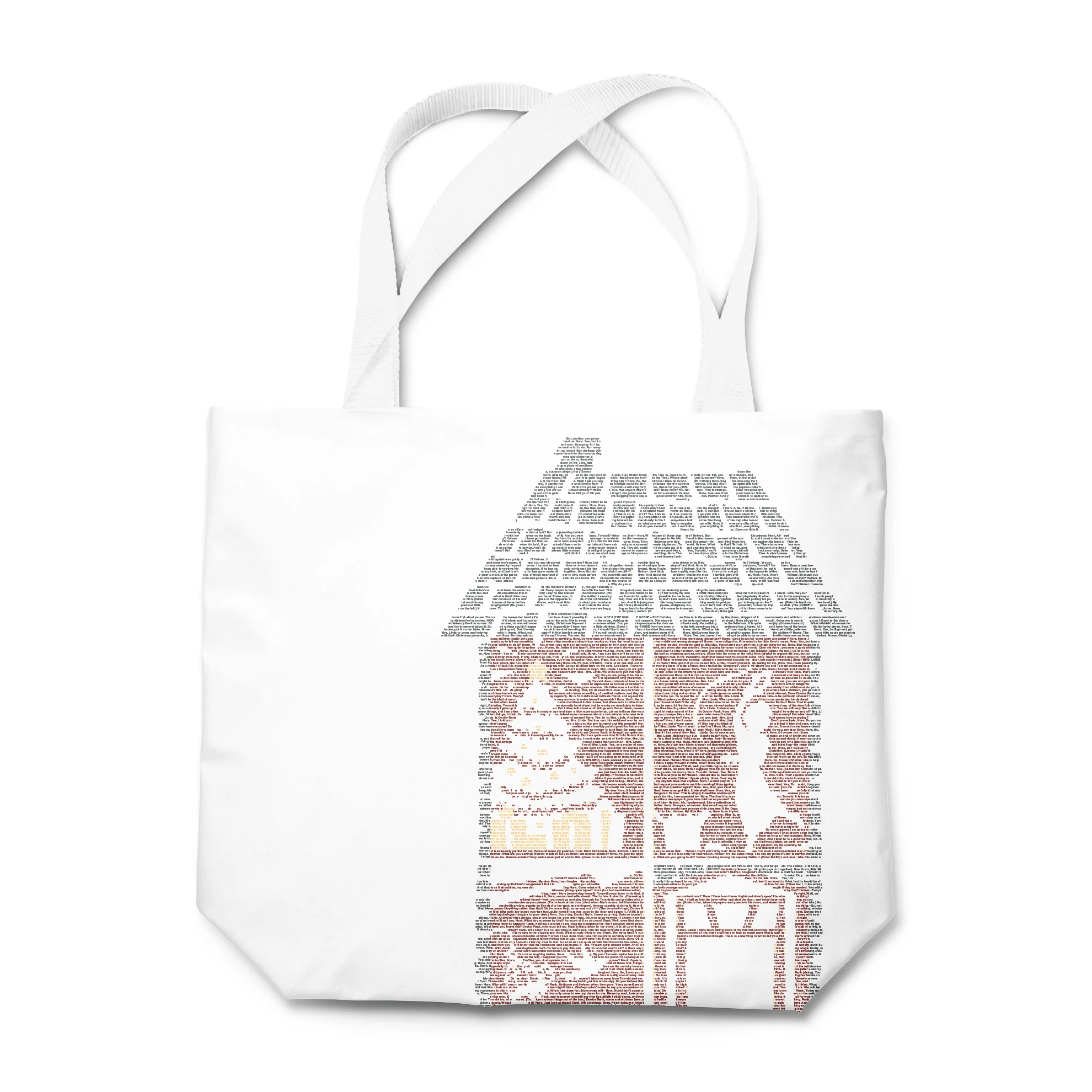 This tote bag is created from the text of A Doll's House by Henrik Ibsen.