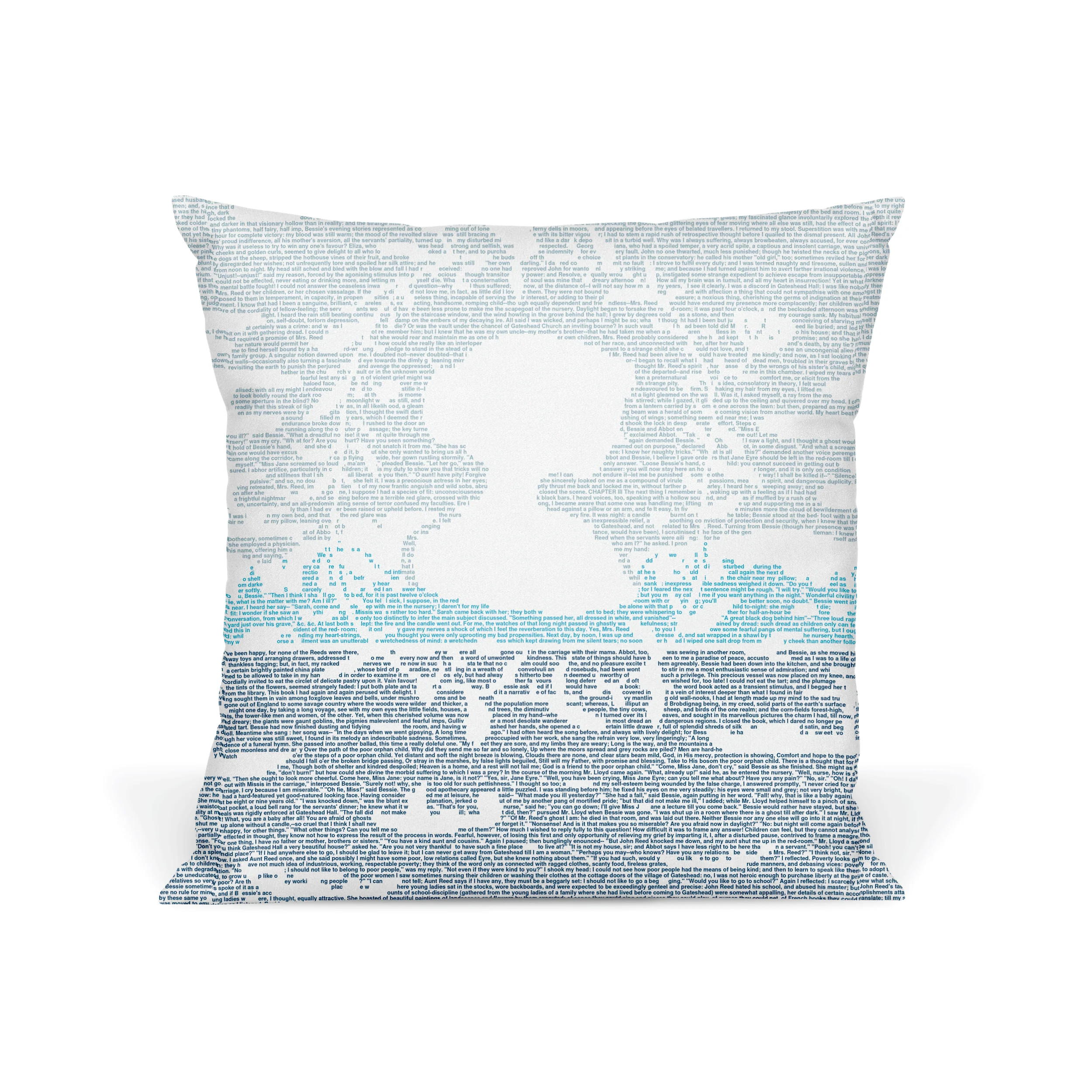 This pillow is created from the text of Jane Eyre by Charlotte Bronte.