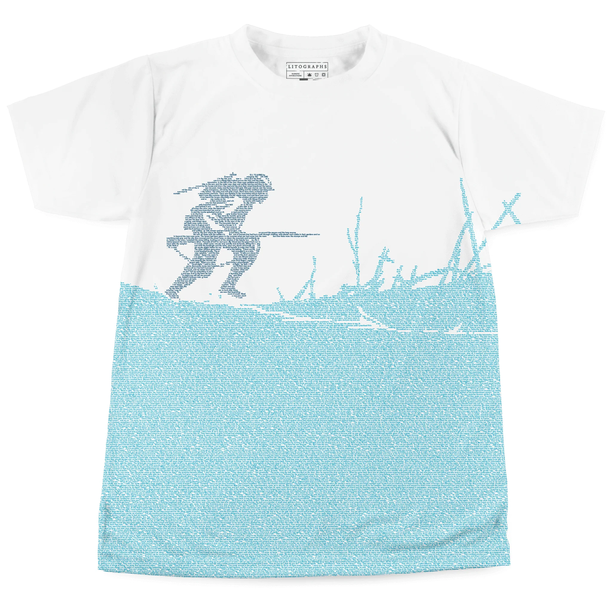 This t-shirt is created from the text of A Farewell to Arms by Ernest Hemingway.