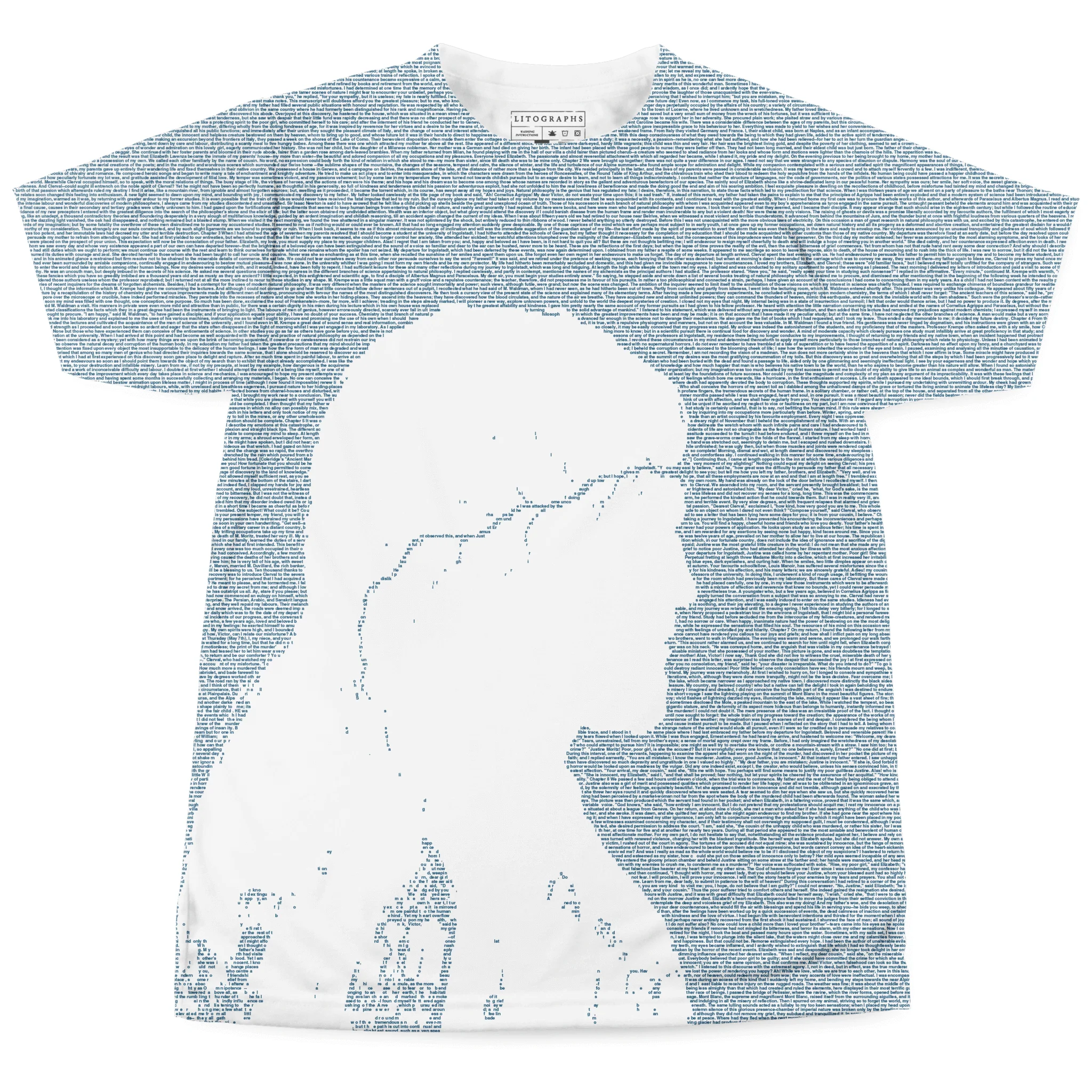 This t-shirt is created from the text of Frankenstein by Mary Shelley.