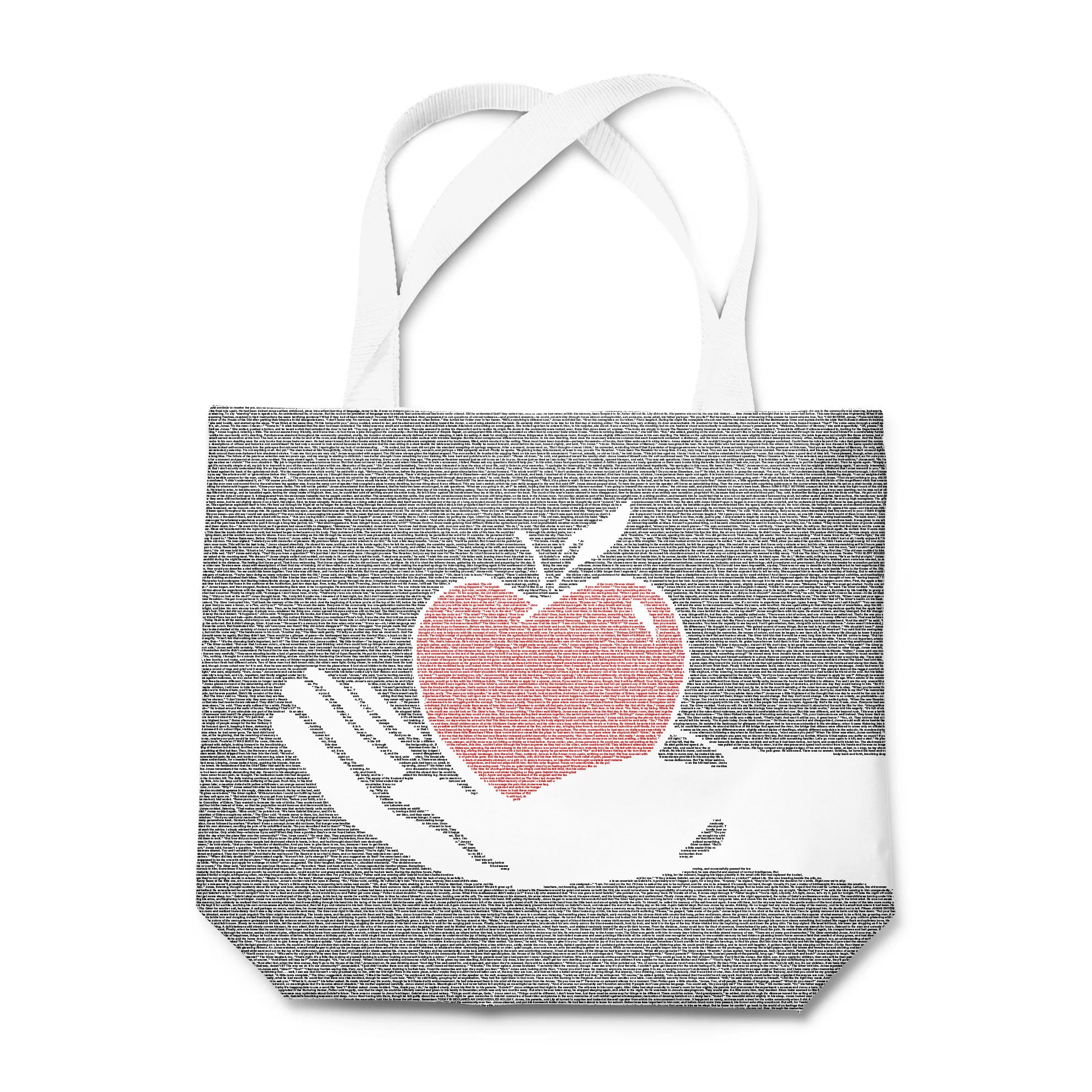 This tote bag is created from the text of The Giver by Lois Lowry.