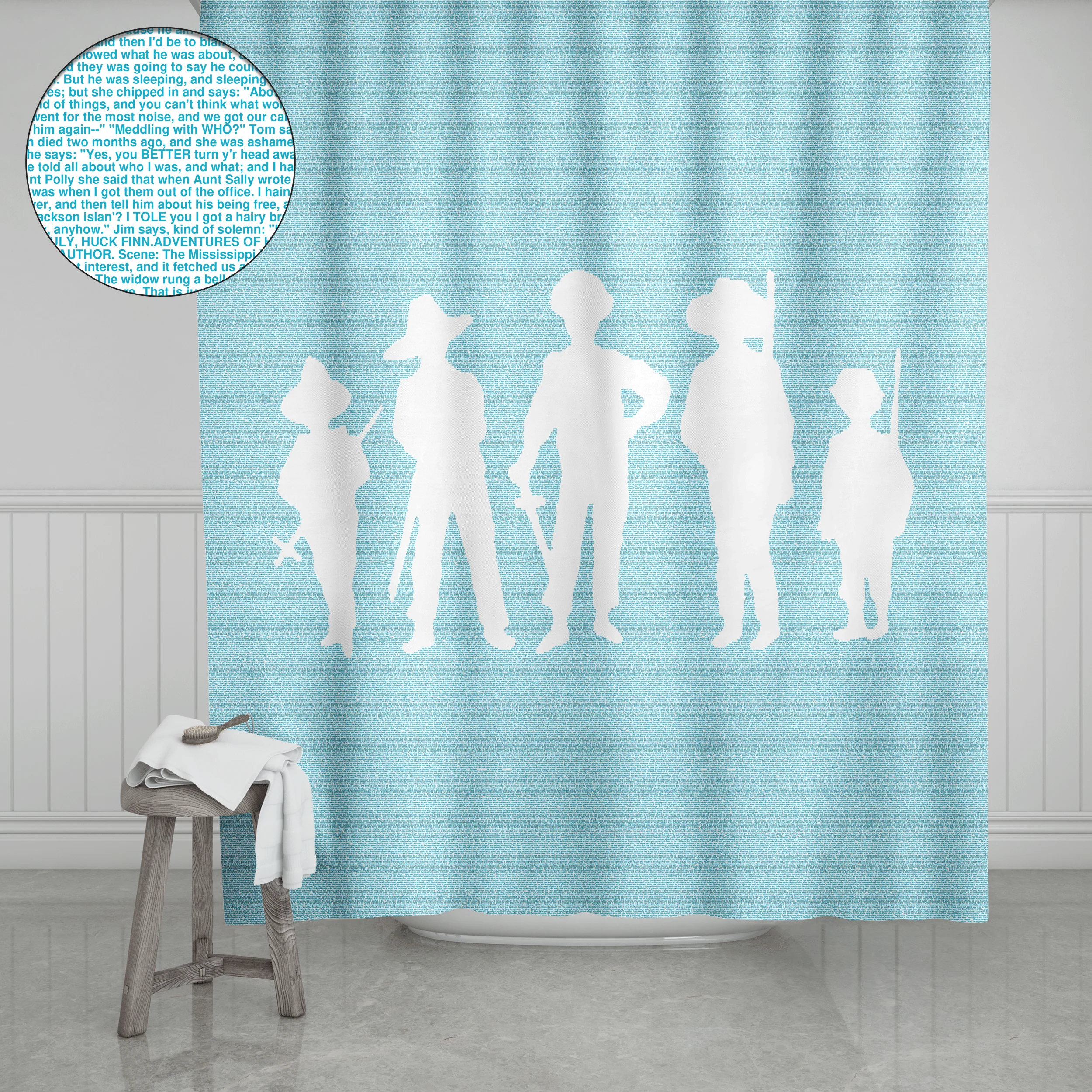 This shower curtain is created from the text of Adventures of Huckleberry Finn by Mark Twain.