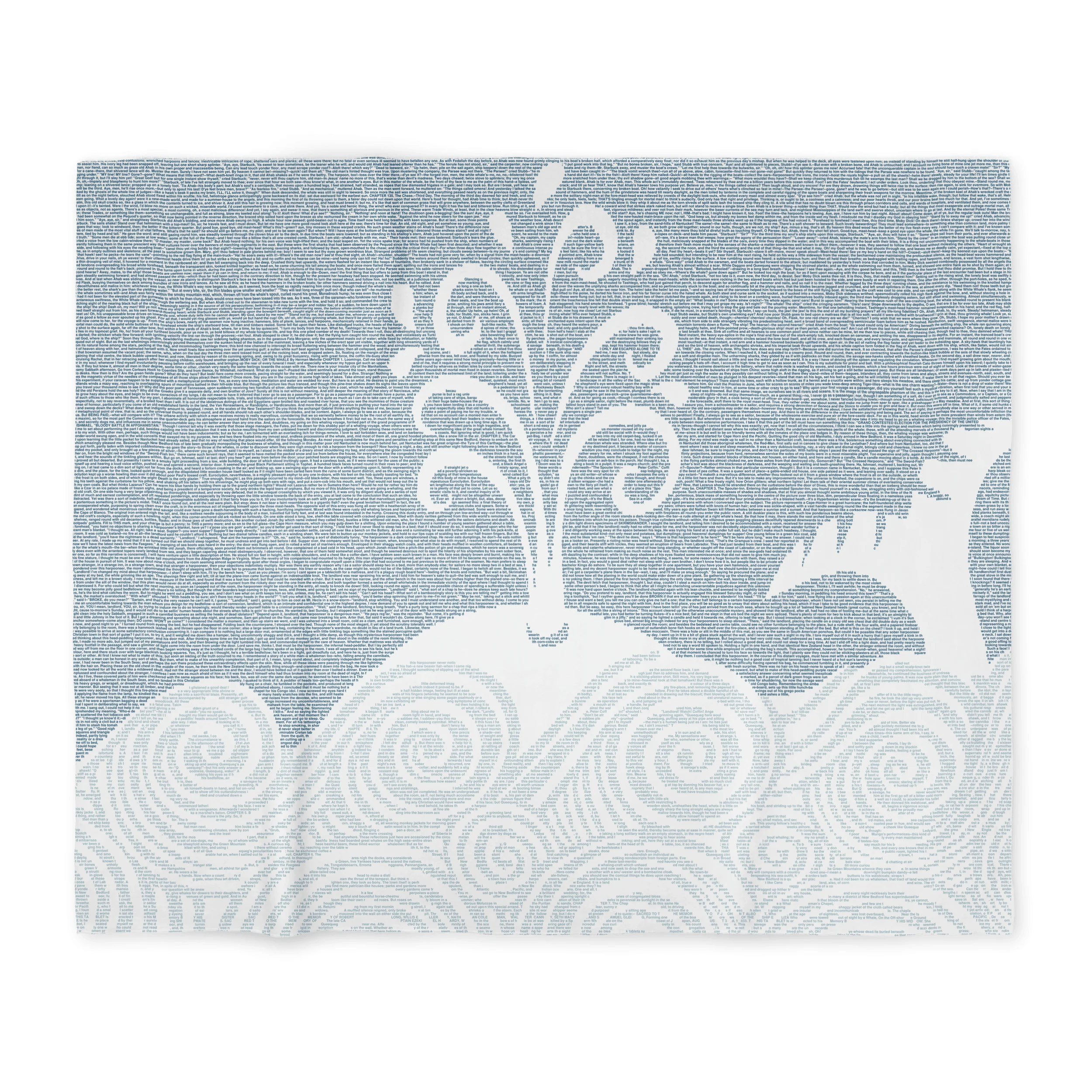 This blanket is created from the text of Moby Dick by Herman Melville.