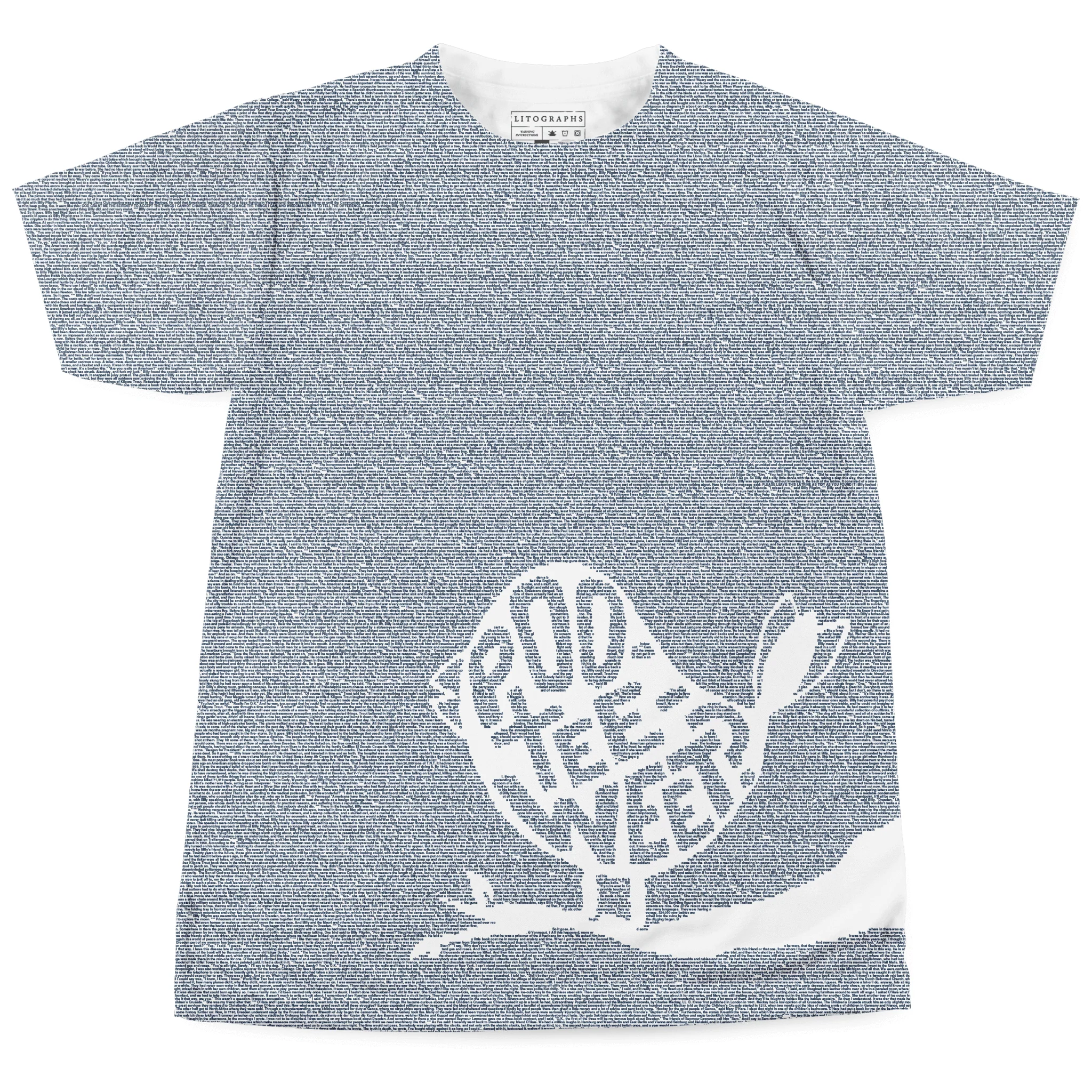 This t-shirt is created from the text of Slaughterhouse-Five by Kurt Vonnegut.