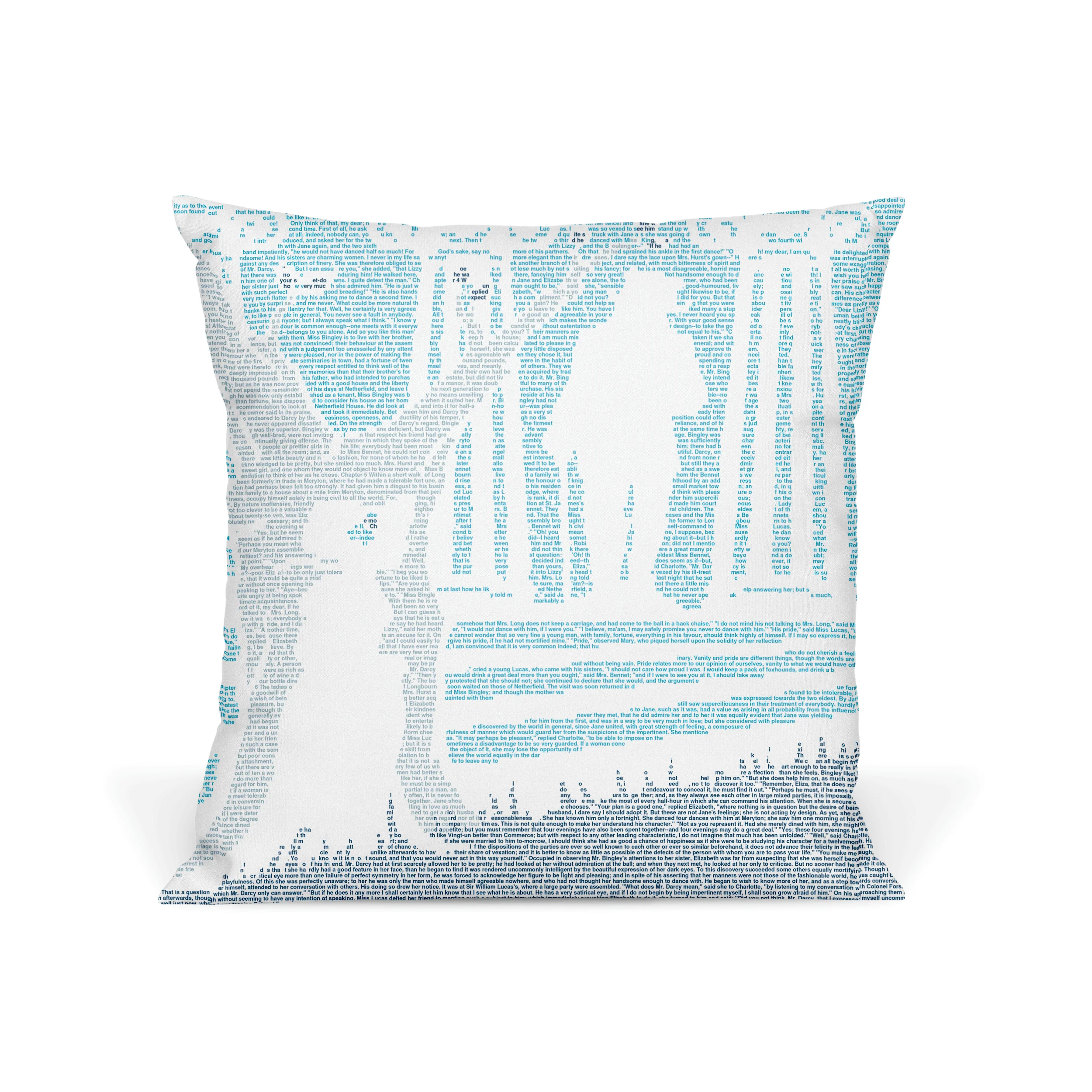 This pillow is created from the text of Pride and Prejudice by Jane Austen.