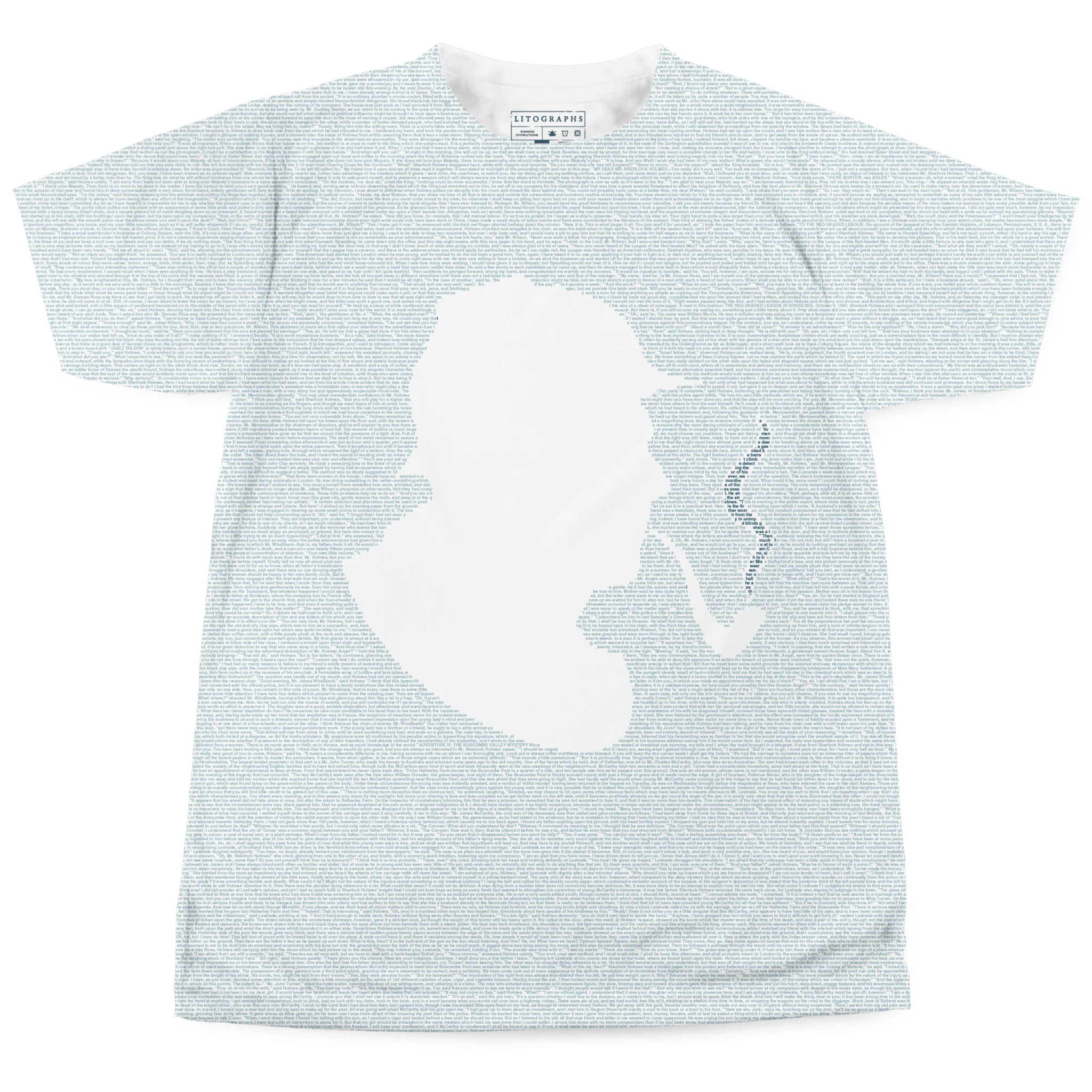 This t-shirt is created from the text of The Adventures of Sherlock Holmes by Arthur Conan Doyle.