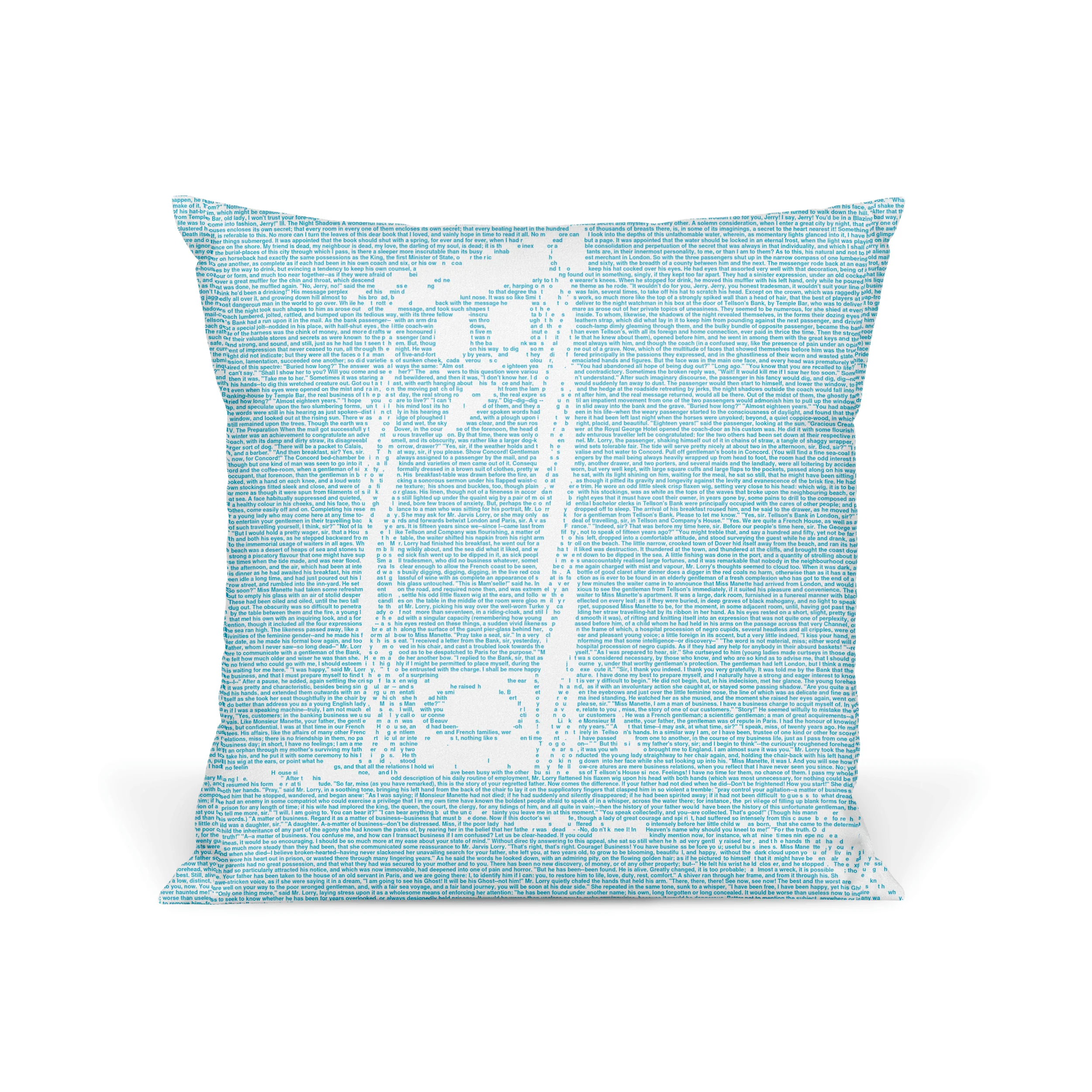 This pillow is created from the text of A Tale of Two Cities by Charles Dickens.