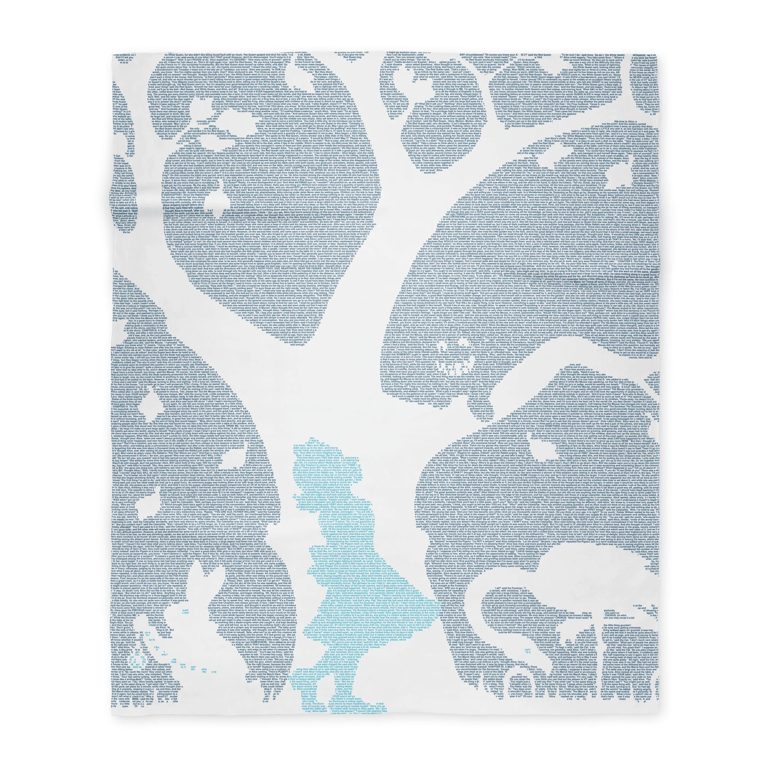 This blanket is created from the text of Alice's Adventures in Wonderland by Lewis Carroll.