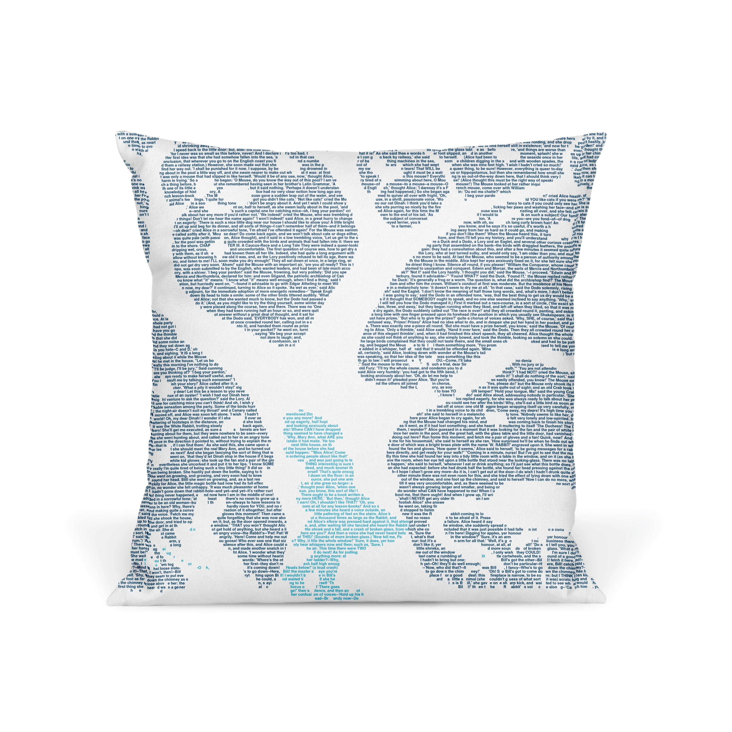 This pillow is created from the text of Alice's Adventures in Wonderland by Lewis Carroll.