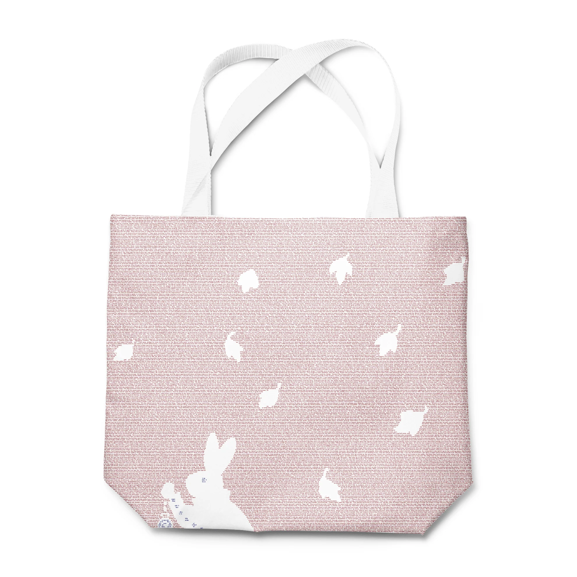 This tote bag is created from the text of Alice’s Adventures in Wonderland by Lewis Carroll.