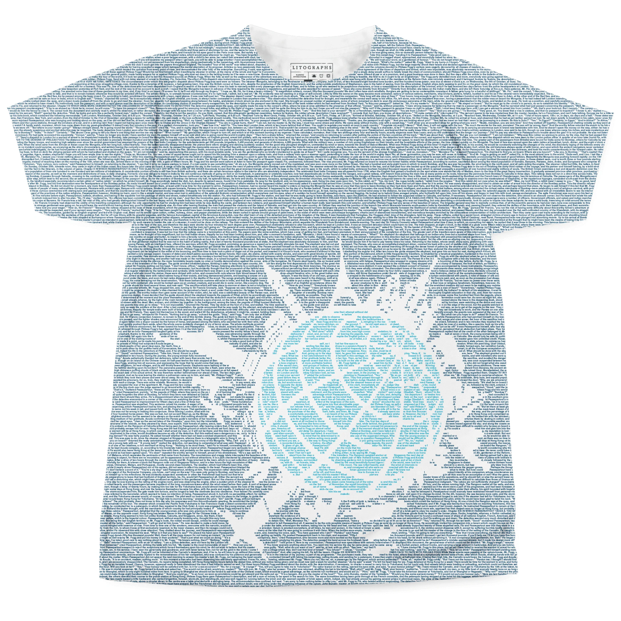 This t-shirt is created from the text of Around the World in 80 Days by Jules Verne.