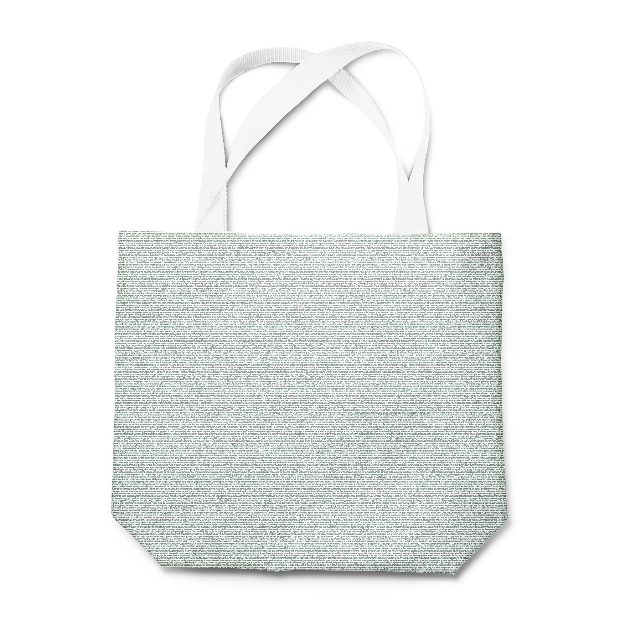 This tote bag is created from the text of Around the World in 80 Days by Jules Verne.